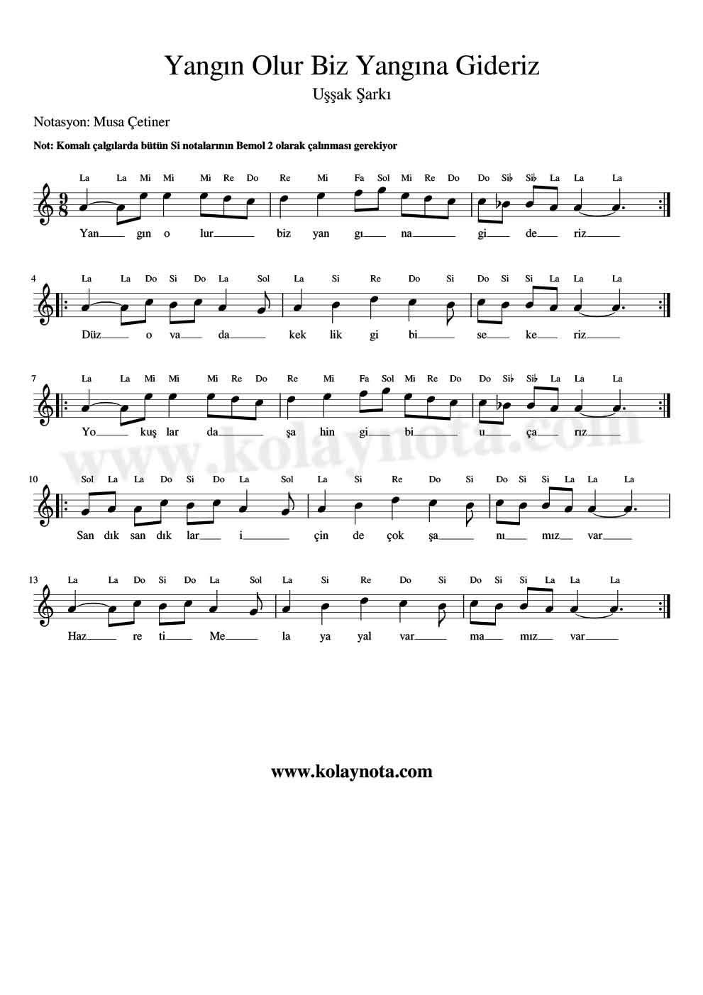 Yangın Olur Biz Yangına Gideriz Do Re Mi ve Kolay Notasyon