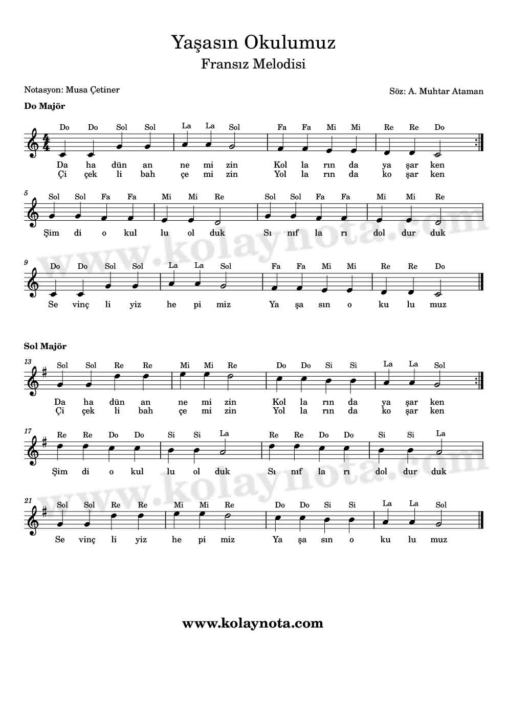 Yaşasın Okulumuz Do Re Mi Notasyon