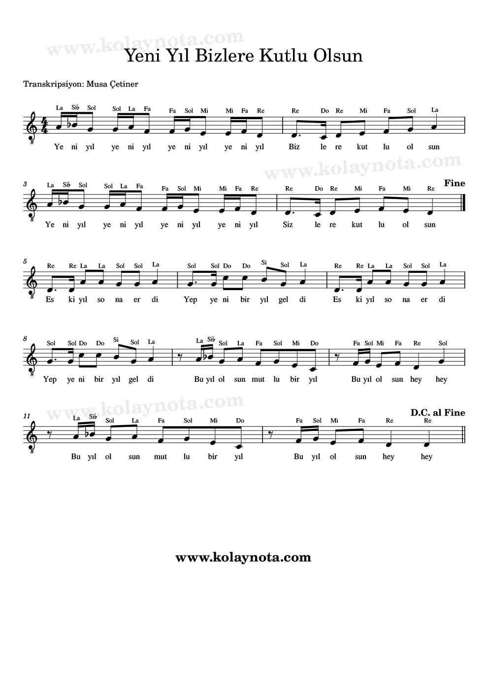 Yeni Yıl Bizlere Kutlu Olsun Notaları
