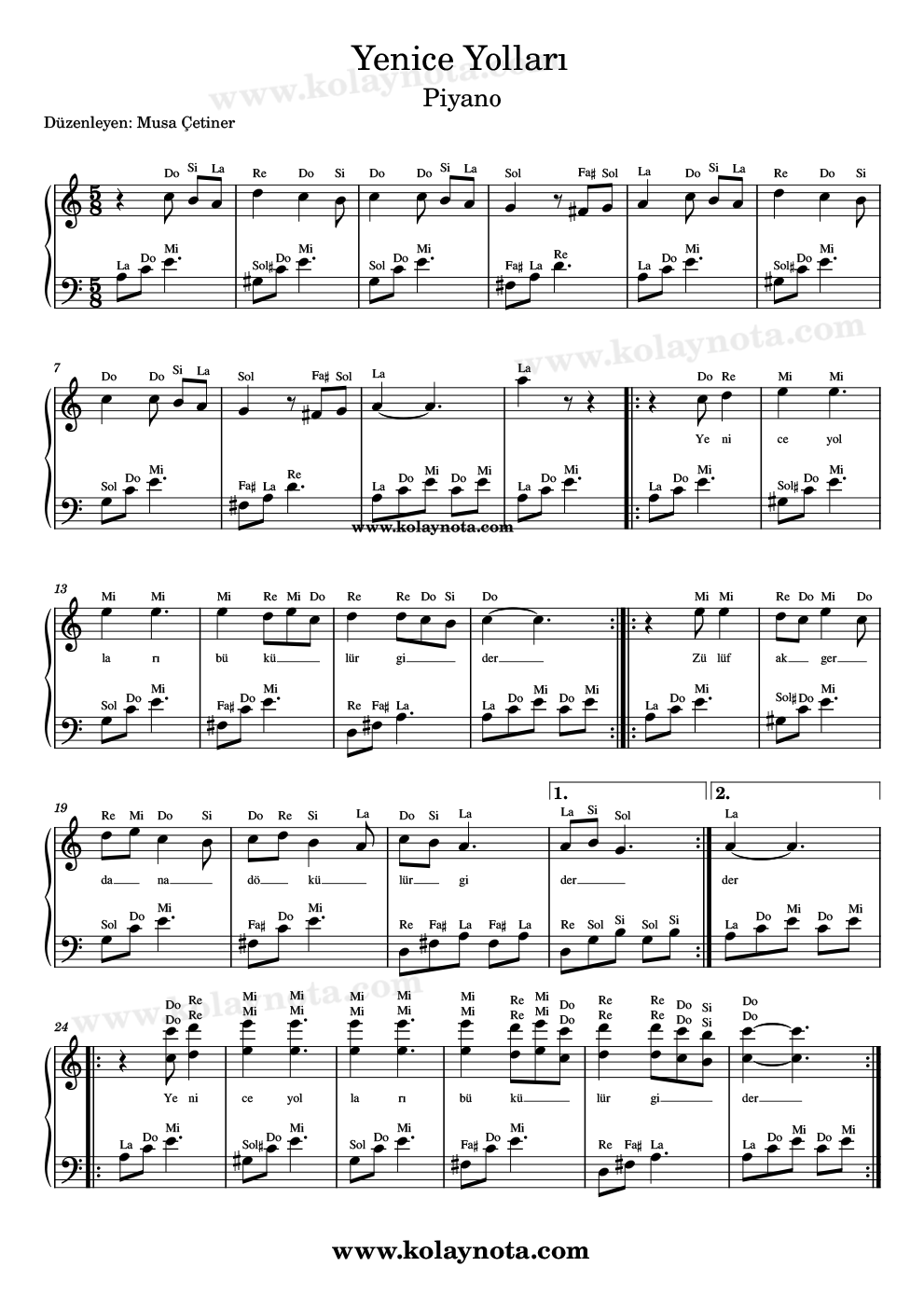 Yenice Yolları – Kolay Nota