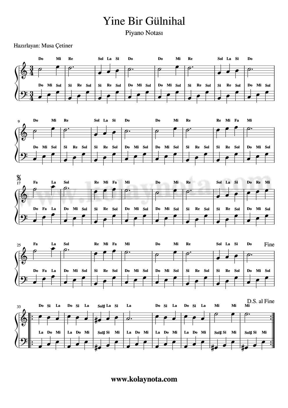 Yine Bir Gülnihal Piyano Notaları – Versiyon 2