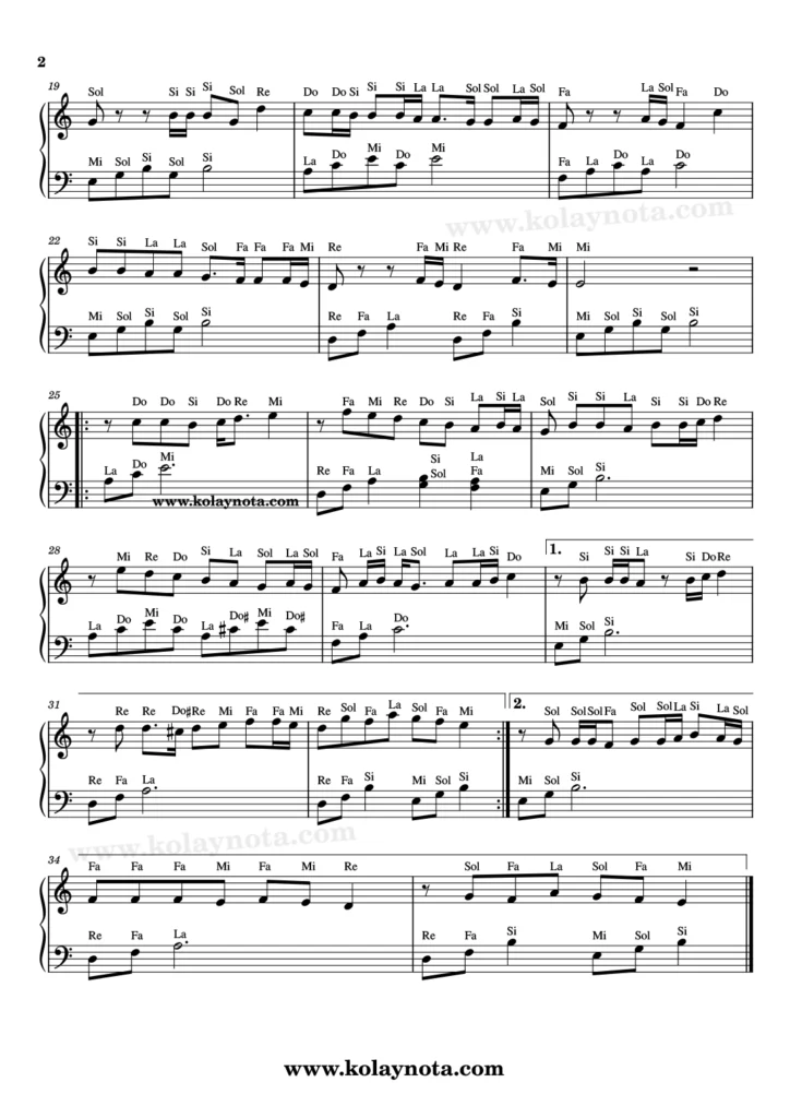 Piyano düzenlemesini de Mi karar sesinde hazırladım. Sol elde akorlu bir eşlik var. Youtube kanalımdaki videosunu izleyerek doğru bir şekilde çalışabilirsiniz.