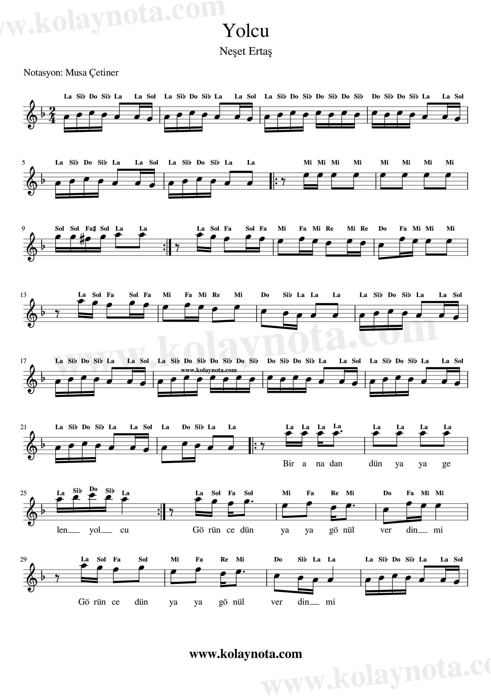 Yolcu çok bilinen Neşet Ertaş türkülerinden. İlk olarak bağlama notası biçiminde paylaşmıştım. Sonrasında do re mi notalarını da eklemeye karar verdim. Do Re Mi notası Mi karar, kolay bağlama notası La karar.
