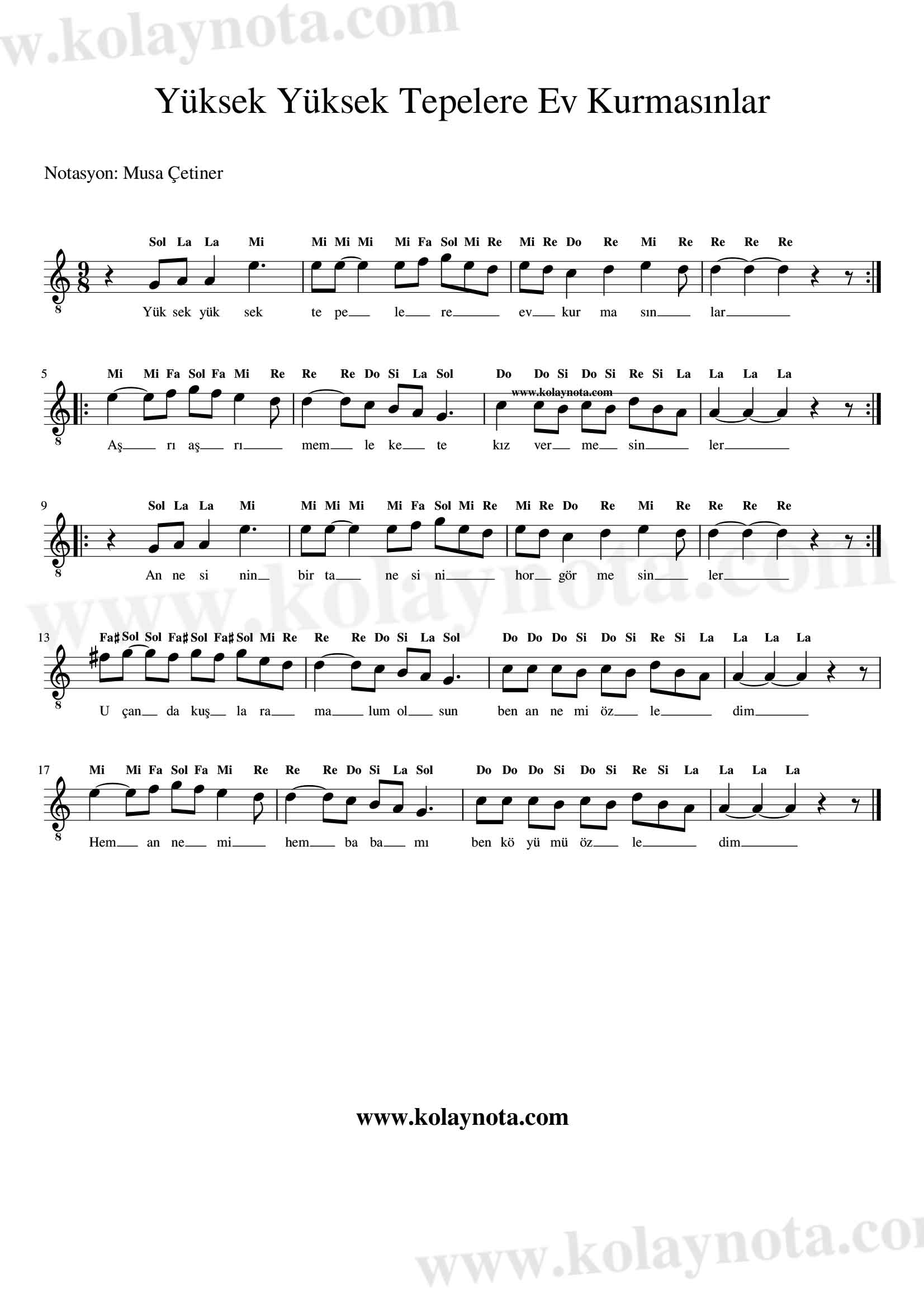 Yüksek Yüksek Tepelere Ev Kurmasınlar – Kolay Bağlama Notası