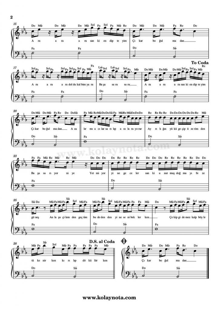 Piyano düzenlemesini kolay piyano biçiminde hazırladım. Sol elde tek sesli bir eşlik var. Youtube kanalıma videosunu yükledim, izlemeyi ihmal etmeyin.