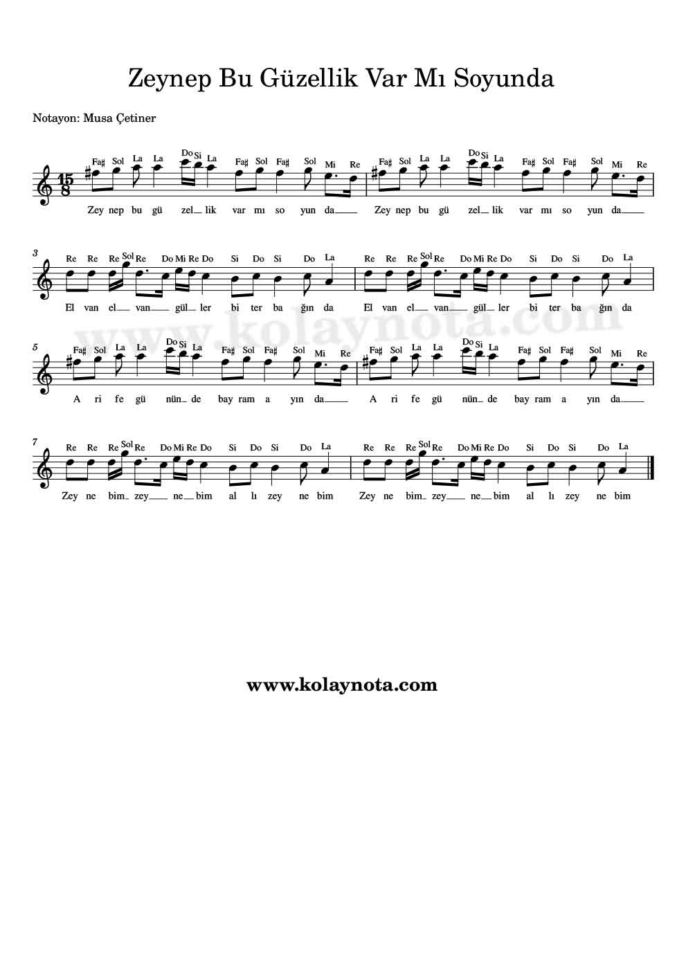 Zeynep Bu Güzellik Var Mı Soyunda Nota