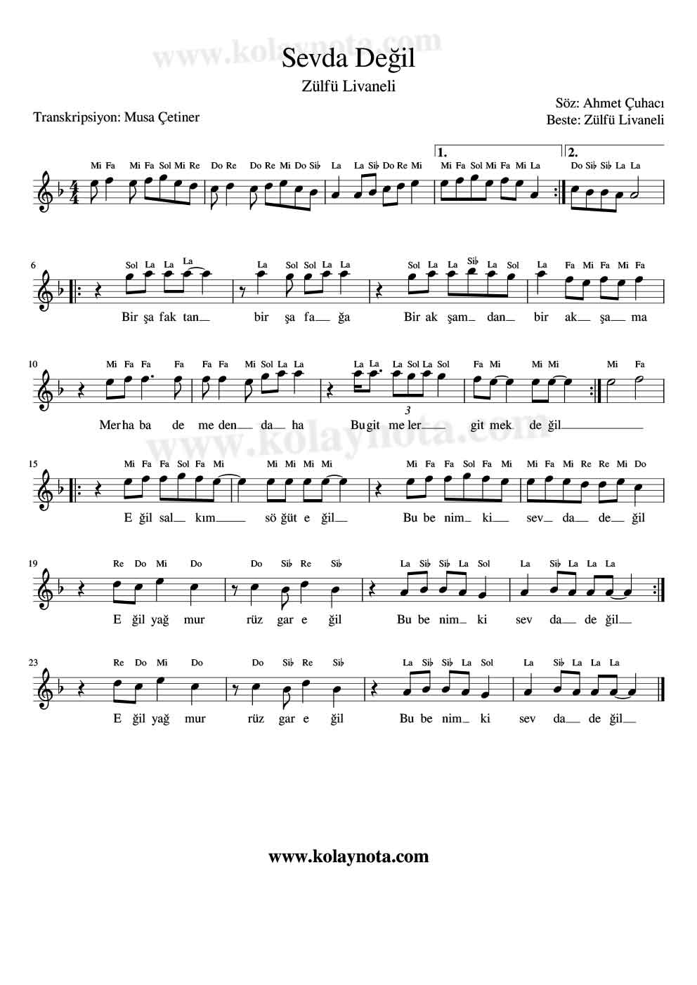Sevda Değil – Kolay Nota by Musa Çetiner