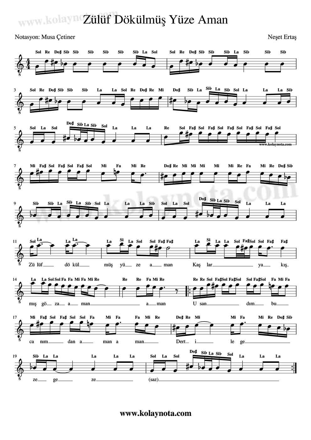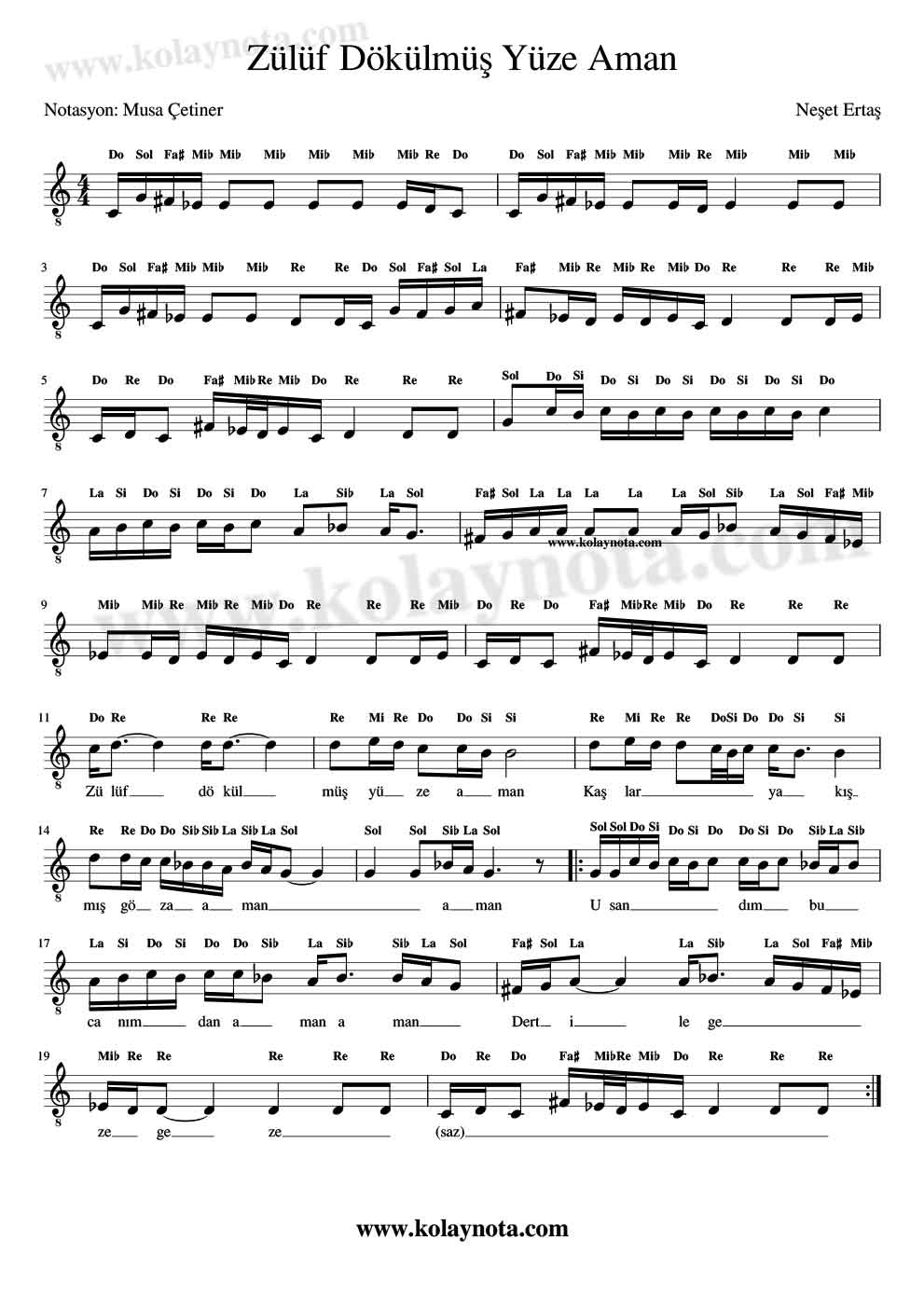 Zülüf Dökülmüş Yüze – Kolay Nota by Musa Çetiner